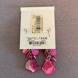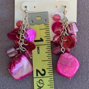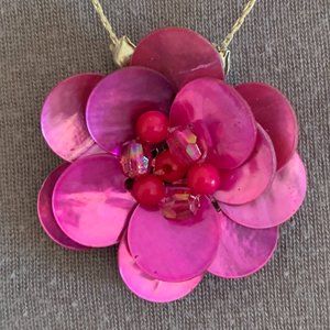Bright Pink Beads and Shell-like Pieces on Silver Chain