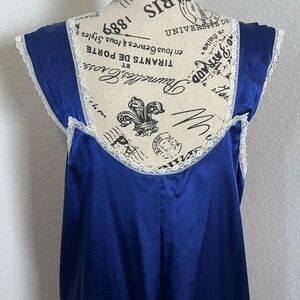 Barbizon Nightgown Maxi Lace Trim Sleepwear Lingerie Loungewear Blue Medium