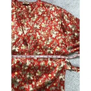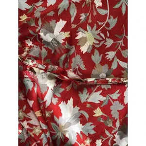 Barbizon robe kimono in red color with yellow / beige floral print all over.