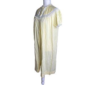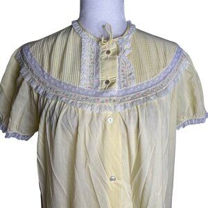 Barbizon Yellow Nightgown Lace Trim Medium Button Front Lightweight Embroidery