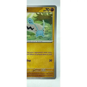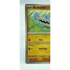This Barboach card from the Paldean Fates set of the Pokémon Trading Card Game features a Whiskers Pokémon with 70 HP and the Hide/Mud-Slap attack. The card is made of high-quality card stock and has a regular finish. It is a basic stage Pokémon card with the card number 050/091 and is part of the S&V collection. The card is in mint unplayed state and comes in an English language. It was manufactured by Nintendo in 2024 and illustrated by ryoma uratsuka. The card is perfect for collectors and players of the Pokémon TCG.