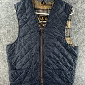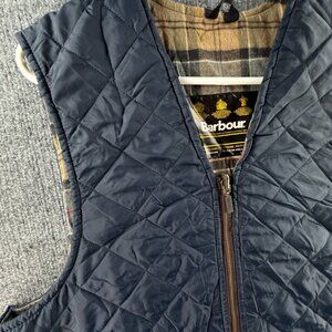 Barbour A856 QUILTED WAISTCOAT Vest Blue Size C42 Full Zip Tartan Lined Men
