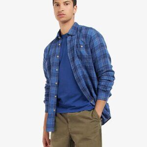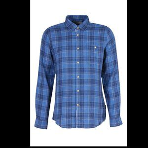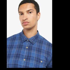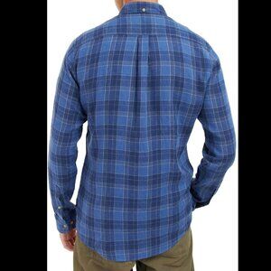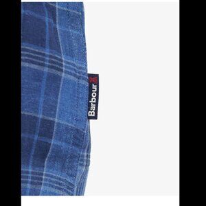 Barbour Arranmore Tailored fit blue plaid linen blend button-up shirt sz M