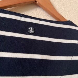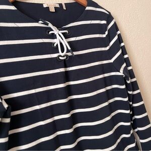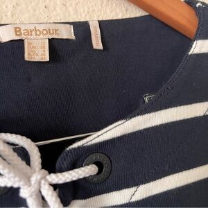 Barbour Women’s Navy Blue Stripe Watergate Overlayer Henley Lace Front Top