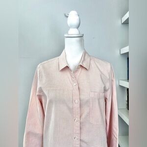 Barbour Beachfront Pink Stripe Button Front Linen & Cotton Shirt size 8