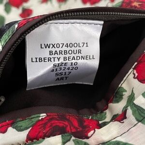 Barbour Beadnell limited edition waxed chore field jacket in a dark espresso brown. Lined with red floral liberty fabric. Corduroy collar. It’s gorgeous. EUC.