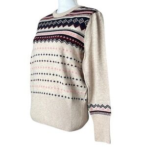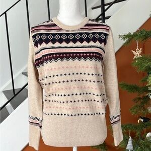 Barbour Birch Knit Fair Isle Wool Sweater Size 14 Oatmeal Cabincore Nordic NEW