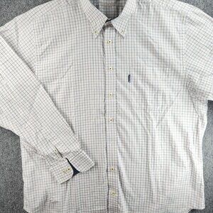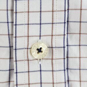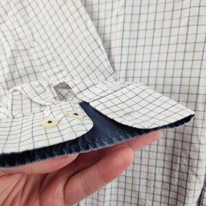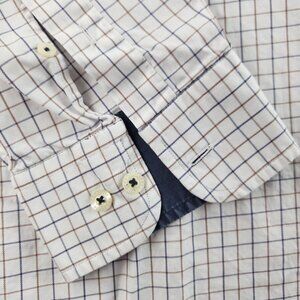 Barbour Blue Brown White Check Button Up Shirt Cotton Pocket Long Sleeve Woven
