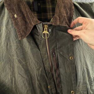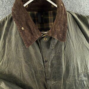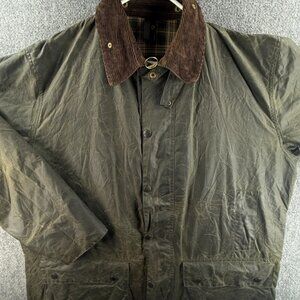 Barbour Border Waxed Jacket Full Zip A200 Green Corduroy Collar Military Size 46