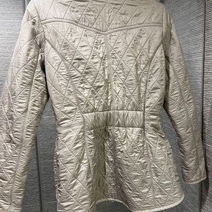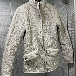 From the Barbour website: This riding-inspired jacket is made in Barbour's signature polarquilt combination of diamond-quilted outer and cosy fleece lining, making it a wonderfully warm choice for everyday winter wear. The elasticated waist panel ensures a comfortable, slim fit and an elegant silhouette.