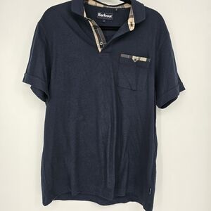 Barbour Corpatch Polo Shirt blue signature taran plaid pocket size large