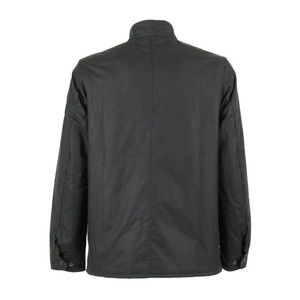 This waxed cotton jacket by Barbour combines functionality with rugged elegance. It showcases a high collar and a strong front snap button closure, tailored for the modern gentleman. Ample storage is provided by two chest flap pockets and two larger front flap pockets. The adjustable snap button cuffs contribute to a structured, slightly boxy fit. Perfect for casual outings, this piece balances style and practicality, catering to an adventurous and sophisticated lifestyle.