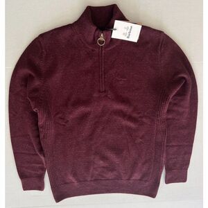 Barbour Essential Tisbury Men Sz Medium Dark Maroon/Ruby Half Zip Sweater