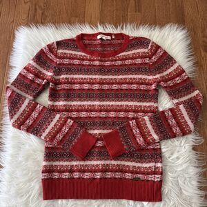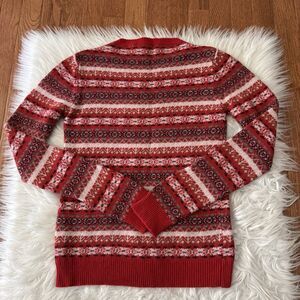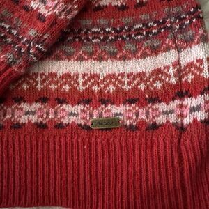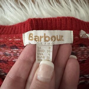 Barbour Fair Isle Knit Sweater Womens XS Nordic Red Wool Cashmere Crewneck Italy. This is tagged a US 4, but it is better suited for an XS. See pics for measurements. Made in Italy. Wool/cashmere blend. From a smoke free/pet free home