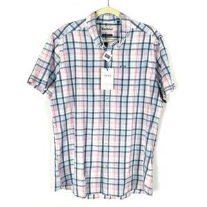 New Barbour Furniss Tailored Shirt Pink Plaid Button Down Short Sleeve Sz L Men