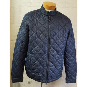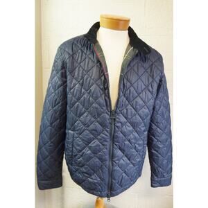 Barbour Harrington Quilted Jacket Mens L Navy Blue Full Zip Tartan Plaid