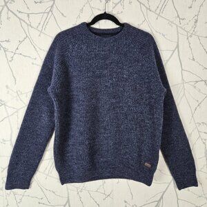 Barbour Heathered Blue 100% Wool Ribbed Knit Horseford Crewneck Sweater