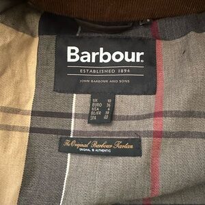 Display model, in nearly new condition. The wax is still in great condition, might show minimal marks from storage/ being tried on. Includes original Barbour pin.