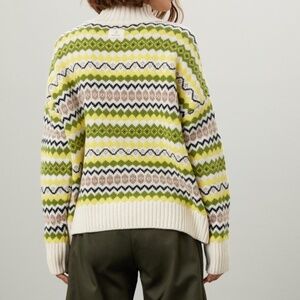 Green geometric knit (60% Wool, 25% Cotton, 15% Polyamide). Sweater. Long sleeves. Turtleneck. Pull on.