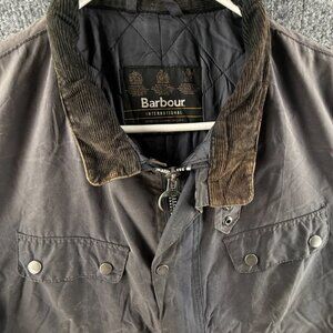 Barbour International Duke XL Waxed Jacket TR Men Full Zip Blue Cargo Pockets