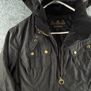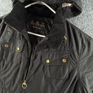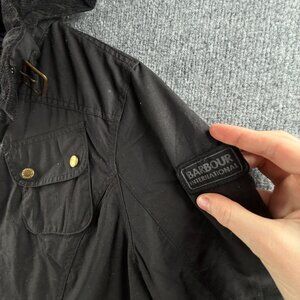 Barbour International Parka Waxed Jacket Women Full Zip Black Size 16 US Adult