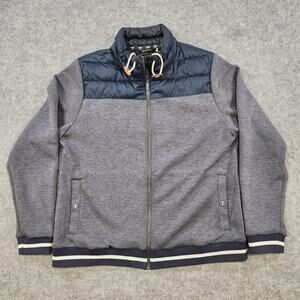 Barbour Jacket Mens Large Blue Gray Longhere Sweat Full Zip Fibre Down Puffer