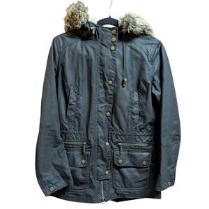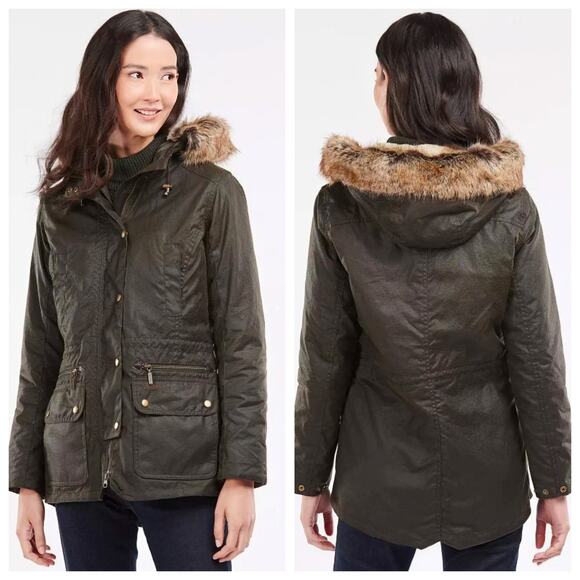 Barbour Kelsall Waxed Cotton Hooded Parka Coat Olive Green Size 4 US Women’s