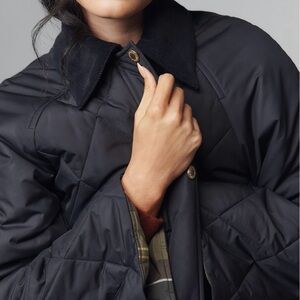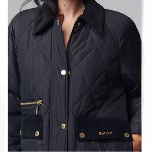 Diamond quilting in a boxy, oversized fit with mixed panels, a corduroy collar, and branded stud closures.