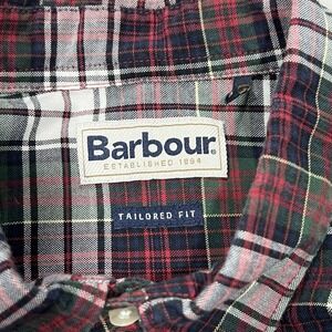 Barbour Men Red Green Tartan Plaid Tailored Fit Button Down Cotton Shirt Medium