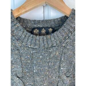 Barbour Men's L Gray Speckled Caledonia Cable Knit Wool Blend Sweater