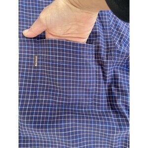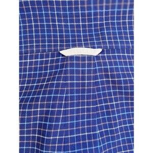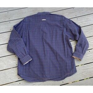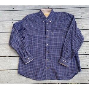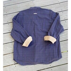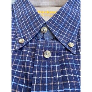 Barbour Mens Large Country Check Shirt Navy Blue Tan Plaid Cotton Corduroy Cuffs