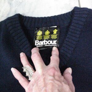 Barbour Men's Navy Blue Patch Detail Washable Wool Sweater Size 36 or XS