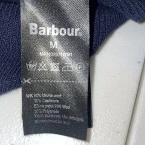 Barbour Men's Navy Blue v neck Cashmere wool Elbow Patch Tartan size Med