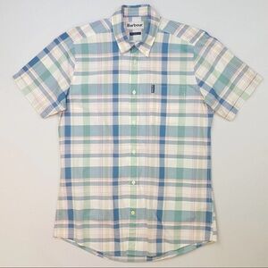 Barbour Mens Plaid Shirt Large Tailored Fit Check Tartan Blue Green Pink