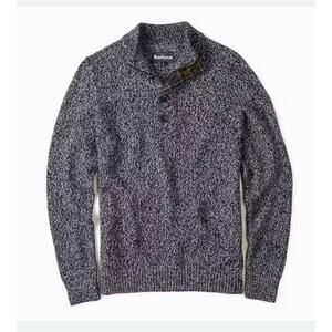Barbour Men's Sid Buttoned 1/2 Zip Sweater in Navy Blue Marl, Size Large