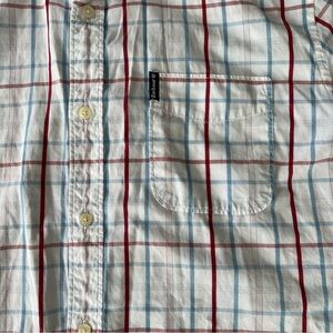 Barbour Men's White and Red plaid short sleeve tailored button up Shirt small