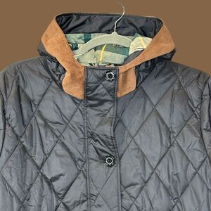 Barbour Mickley Quilted Jacket Black Ancient Full Zip Button Panel Women 2X NWT