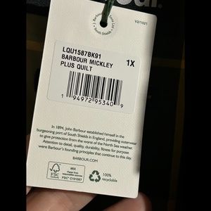 Barbour Mickley Quilted Jacket/Coat Black/Ancient Brown Corduroy Size 1X - NWT