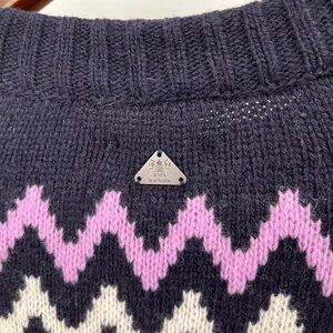 Color/Print: Navy blue with purple, cream, taupe Fair Isle pattern
