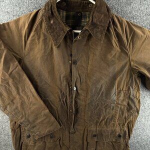 Barbour Moorland A50 Waxed Jacket Men Full Zip Brown Tartan Lined Hunting Adult