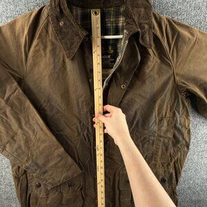 Please note that the sizing of Barbour waxed jackets are generally EUROPEAN. To ensure a good fit, please see the measurements