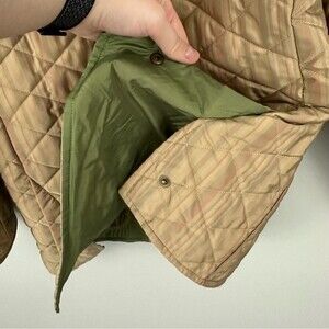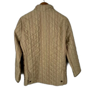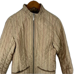 Barbour vintage inspired muted tan brown pink striped quilt full-zip long sleeve jacket size USA 6.