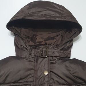 Features: front pockets,long sleeves, hooded, zip up, button clip, adjustable belt