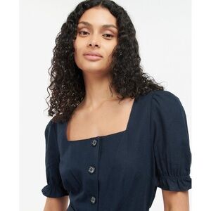 Barbour Navy leilani linen blend square neck puff sleeve Jumpsuit 14
