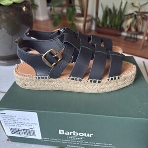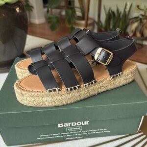 Add a beachy touch to your look with these platform sandals from Barbour, featuring caged leather uppers on a woven jute sole.
