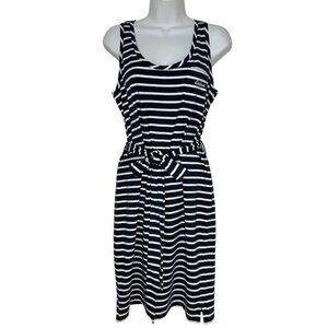Barbour Patterson Striped Tank Dress Navy White Jersey Knit Belted Size 6