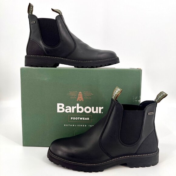 Barbour Patton Chelsea Boot Size 8 Black Leather Waterproof Ankle Boots