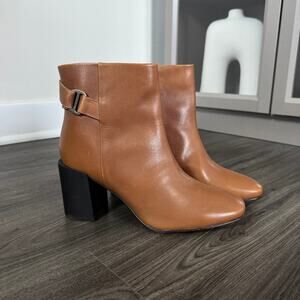 Barbour Piper Tan Leather Black Heeled Buckle Ankle Booties 38 Almond Toe Shoes