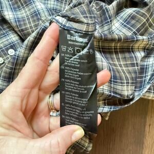 Classic British style meets everyday comfort with this Barbour plaid button-down shirt. Features a timeless blue, brown, and tan check pattern in soft poly-cotton fabric — perfect for layering or wearing on its own.