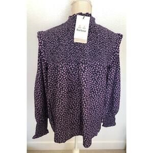 Tags: Barbour, Floral, Floral Print, Shirring, Ruffle, Blouse, Business Casual, Mock Neck